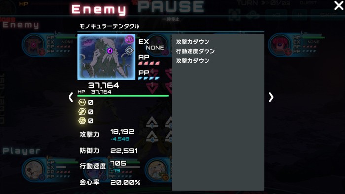 奥に行けば行くほど敵のステータスが上がってくるから、割合で下げておけるのはすごく有り難いお。