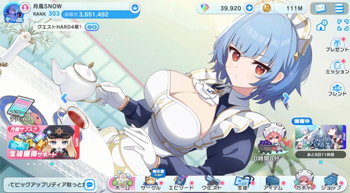 ランクは303で、一応、毎日ログインの日課はこなしていると思います。