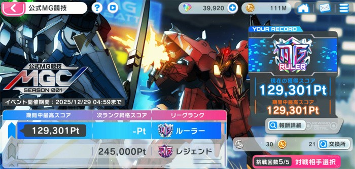 公式MG競技は一応、リーグランクルーラーまで到達していますが、ルーラーで勝つ事は非常にキツい状況になってます。