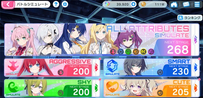 バトルシュミレートはこんな感じで、コツコツ進めていますが、属性別は200フロアがマジで鬼門です。