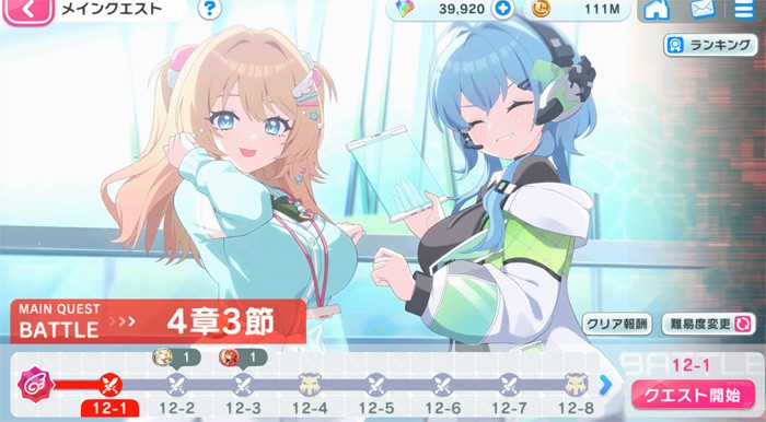 メインクエストもハードの12-1まで来ていてゆっくり試行錯誤しながら進めています。