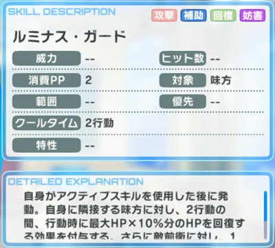 パッシブスキルの「ルミナス・ガード」はクールタイムが2行動なので、AP4での運用を前提としたい所。