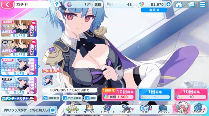 手持ちのピックアップガチャポイントは131枚。