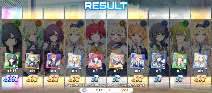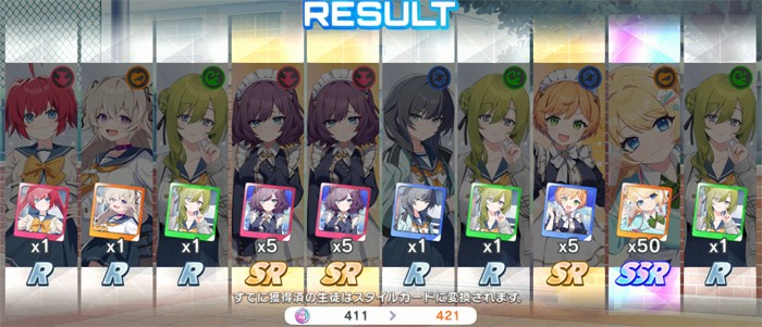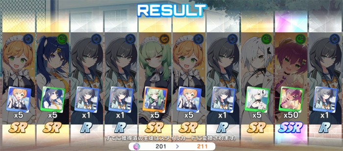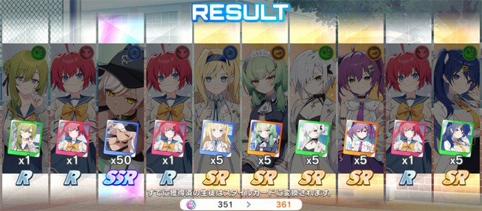 350連でSSR15枚という結果は確率的には約4.28%なので若干上振れと言えましたが、ピックアップ0はやはりダメージがデカいですね……。